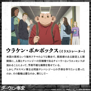 人とチンパンジーの間に生まれた「ヒューマンジー」チャーリー。「テロ」「炎上」「差別」……ヒトが抱える問題に、「ヒト以外」のチャーリーが向き合うヒューマン&ノン・ヒューマンドラマが遂にTVアニメ化。