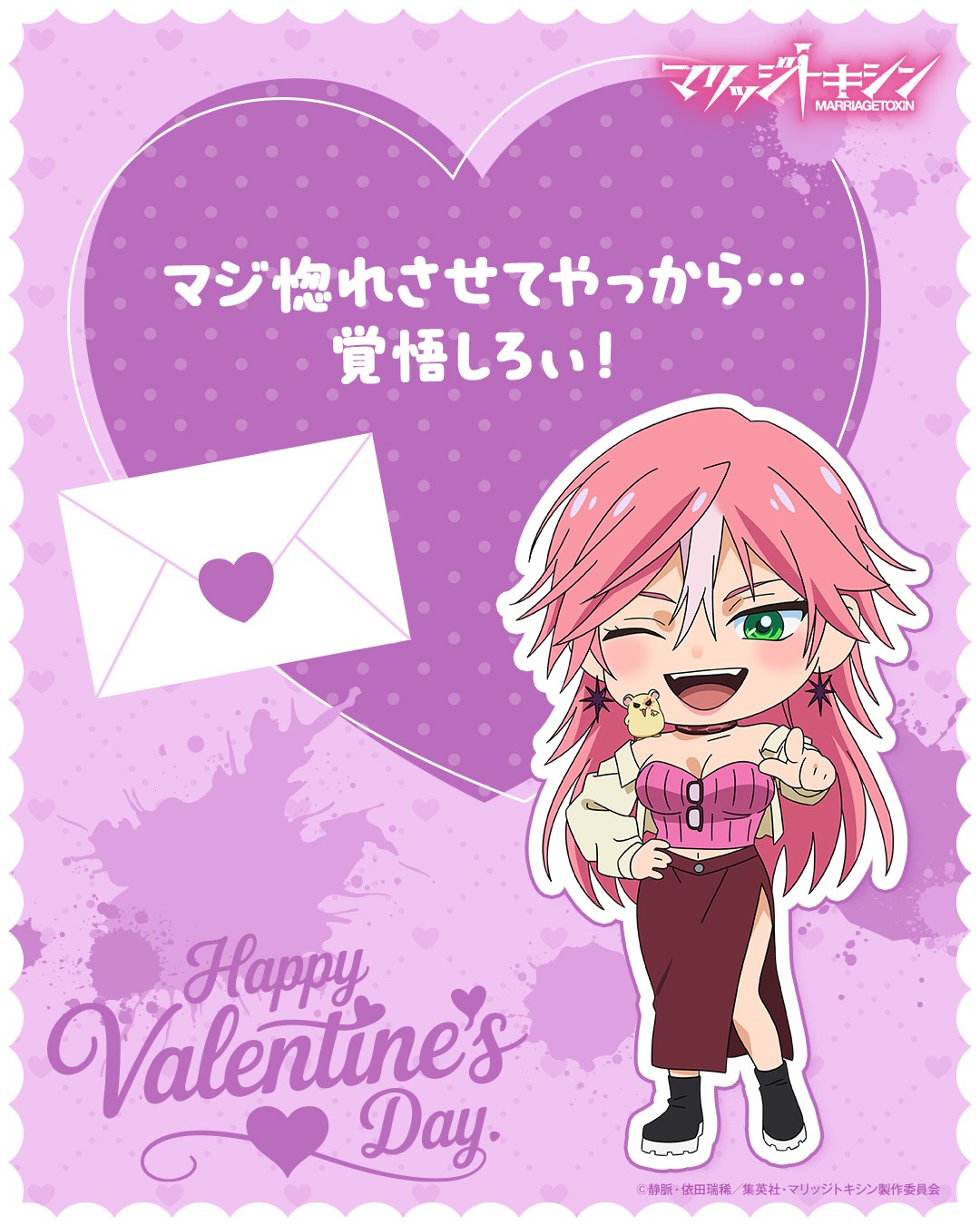TVアニメ『マリッジトキシン』の公式Xにて豪華キャスト直筆サイン入りのメインビジュアルポスターが当たるバレンタインキャンペーンを実施!!この機会に是非ご参加を!