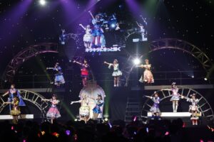 会場が暗転すると、本公演ロゴが浮かび上がり、中央の扉から、カルテットスターのサクラ(日比優理香)・タマキ(鈴木杏奈)・アイリ(徳井青空)・リンリン(和多田美咲)、ビビアンチィのビビ(寺澤百花)・チィ(大地 葉)、ジャンピンロケットのすばる(小林竜之)・おとめ(大森綺星)、じゅりあ(土屋李央)、シークレットフレンズ∞のひまり(藤寺美徳)・みつき(平塚紗依)・つむぎ(久保ユリカ)が順々に登場。会場の大きな拍手に迎えられながらそれぞれポーズを決め、ライブがスタート。