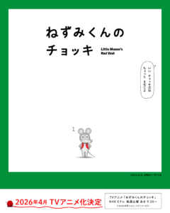 株式会社ポプラ社より1974年に刊行された「ねずみくんの絵本」シリーズ(著者:なかえよしを/作 上野紀子/絵)。TVアニメが、4月より放送されることが決定した。