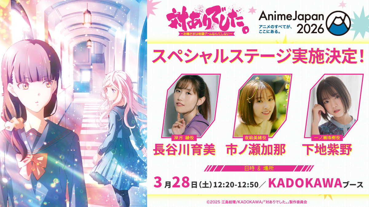 「AnimeJapan 2026」KADOKAWAブースで、TVアニメ『対ありでした。~お嬢さまは格闘ゲームなんてしない~』の生配信ステージイベントが開催決定した。