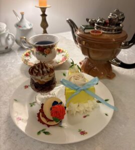 紅茶のシフォンケーキ/白あんのバラとリボン添え