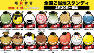 さらに、本作の公開を記念して全国の劇場で「ご当地殺せんせー」企画も始動。『劇場版「暗殺教室」みんなの時間』公開劇場(※一部劇場を除く)にノーマルの殺せんせースタンディが掲出される他、石川県の「おでん」や、神奈川県の「シュウマイ」、鹿児島県の「白くま」など、各地の特産品に扮したファン必見の限定スタンディが全国15劇場に出現。