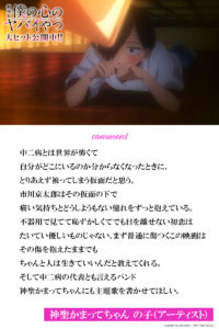 お笑い界からはダイアン・ユースケ、相席スタート・山﨑ケイがコメントし、ユースケは『市川は間違いなく陰キャのエースです。』と語る。音楽界からは神聖かまってちゃん・の子は『中二病の代表とも言えるバンド神聖かまってちゃんにも主題歌を書かせてほしい。』とコメント!ほか、女優・タレントの田中美久、EXILE/FANTASTICS・世界、そしてコスプレイヤー・グラビアアイドルの伊織もえより、作品の魅力を語るユニークで読み応えのあるコメントが寄せられた。