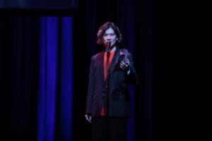 開演前のナレーションは、クロノス・デ・メディチ(CV:清水宏)が担当。クロノス先生の特徴的な口調で観客の期待を煽りました。そして、鮫島校長(CV:岩崎 征実)の挨拶でデュエルアカデミア同窓会が開幕。主人公・遊城十代が登場し「十代ヒストリー」が流れると懐かしの名シーンに、会場は確かな高揚感で満ちあふれていました。