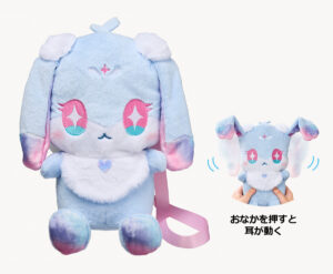 フォーチュデザインのぬいぐるみポシェットです。ファスナーを開けるとミラーパクトなどのアイプリグッズが収納できるサイズで、おなかを押すと耳が動くギミックが付いています。ぬいぐるみとしても楽しめます。