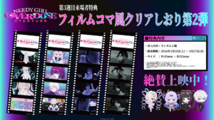 絶賛上映中の劇場先行版『NEEDY GIRL OVERDOSE -OVERTURE-』の第3週目来場者特典は、「フィルムコマ風クリアしおり 第2弾(ランダム4種)」に決定!