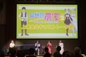 2023年に第1期が放映され、その続編としていよいよ2026年4月より放映スタートとなるアニメ『異世界のんびり農家2』。3月14に東京・大手町にある俺のフレンチ グランメゾン TOKYOで、アニメ第1話先行上映会&キャストトーク会が開催された。