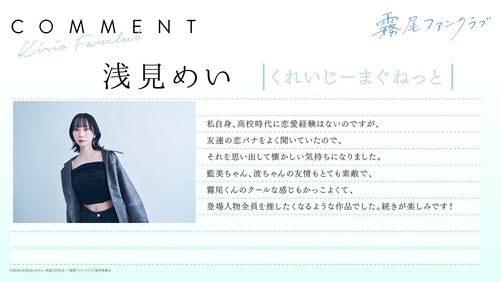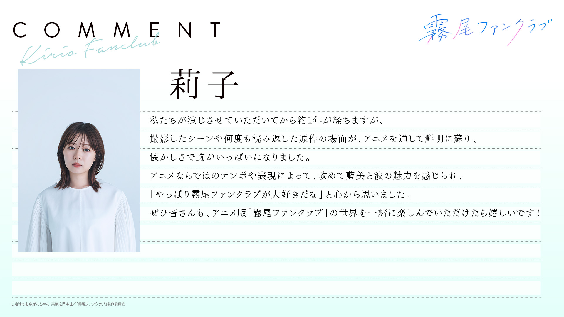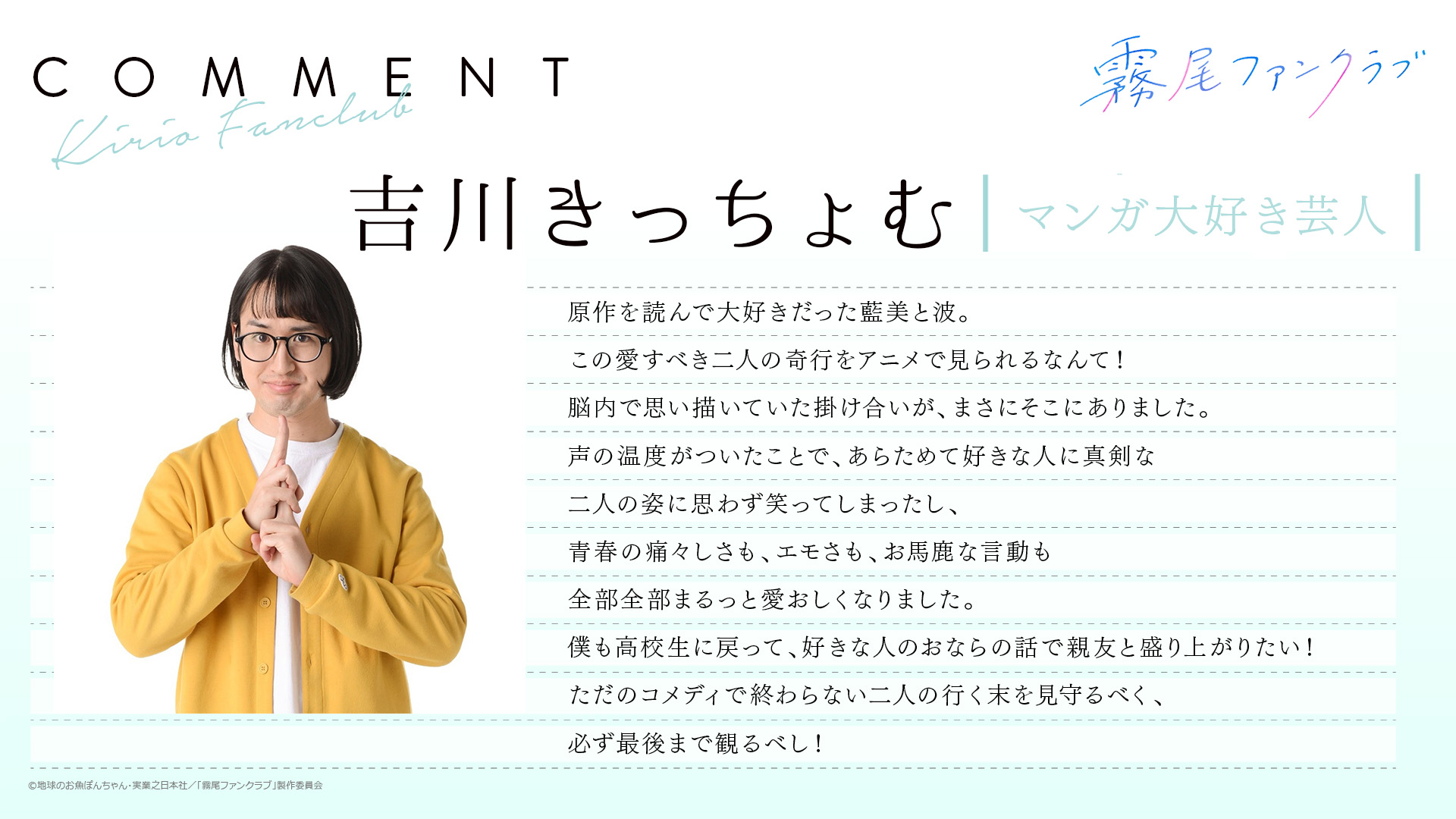 TVアニメ「霧尾ファンクラブ」の魅力が語られたコメントの数々を、どうぞお見逃しなく。
