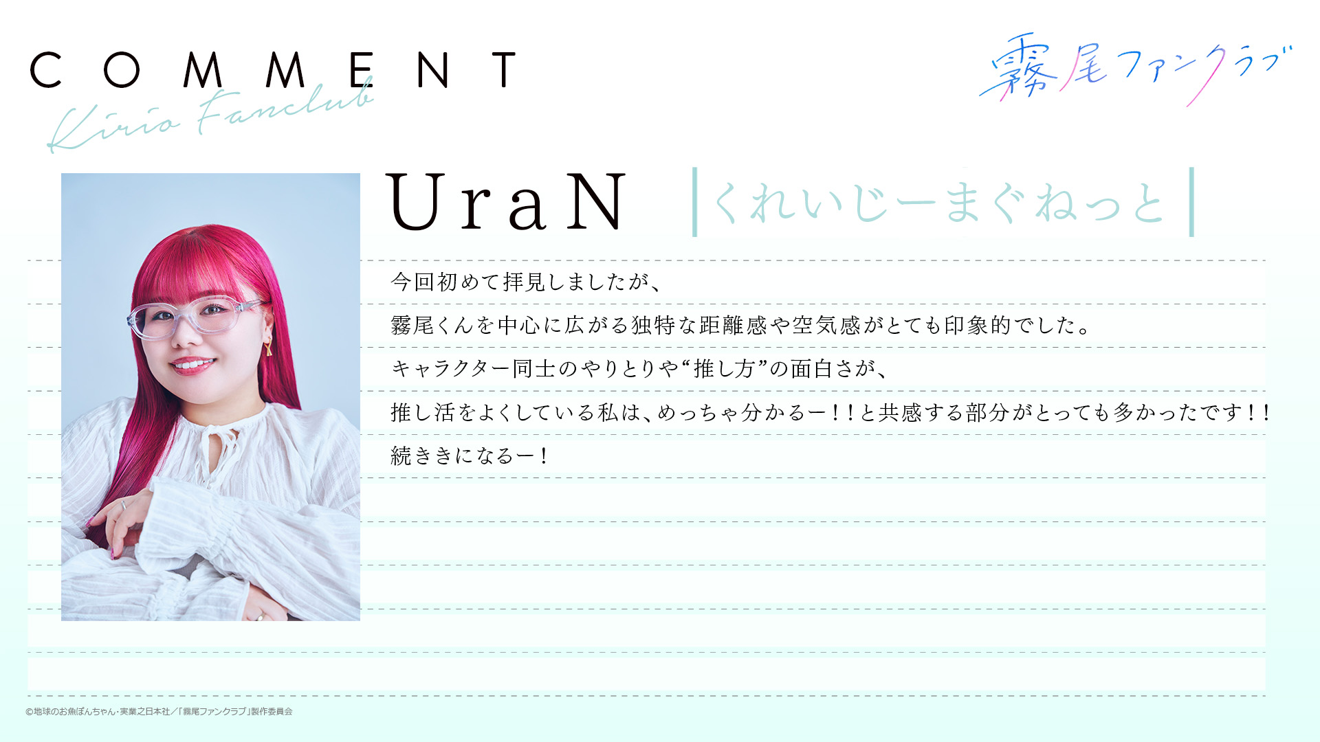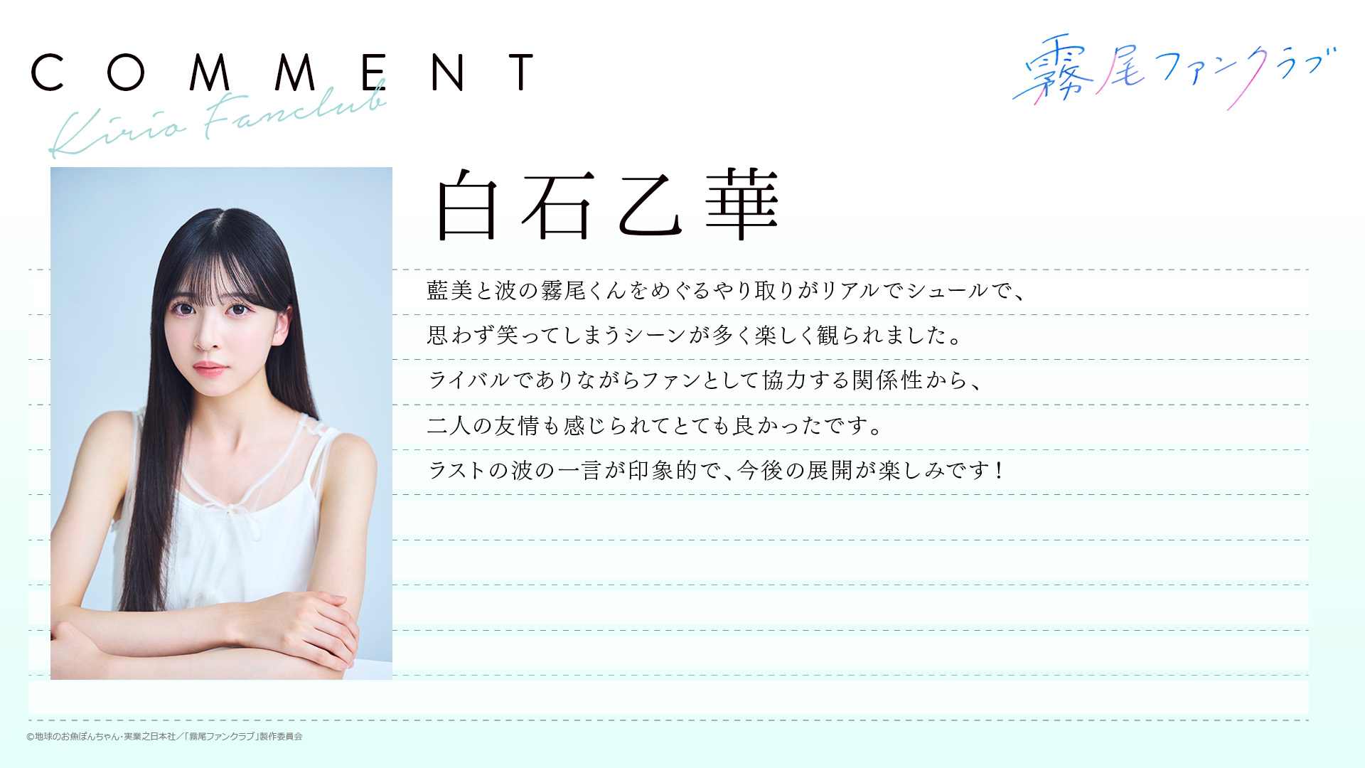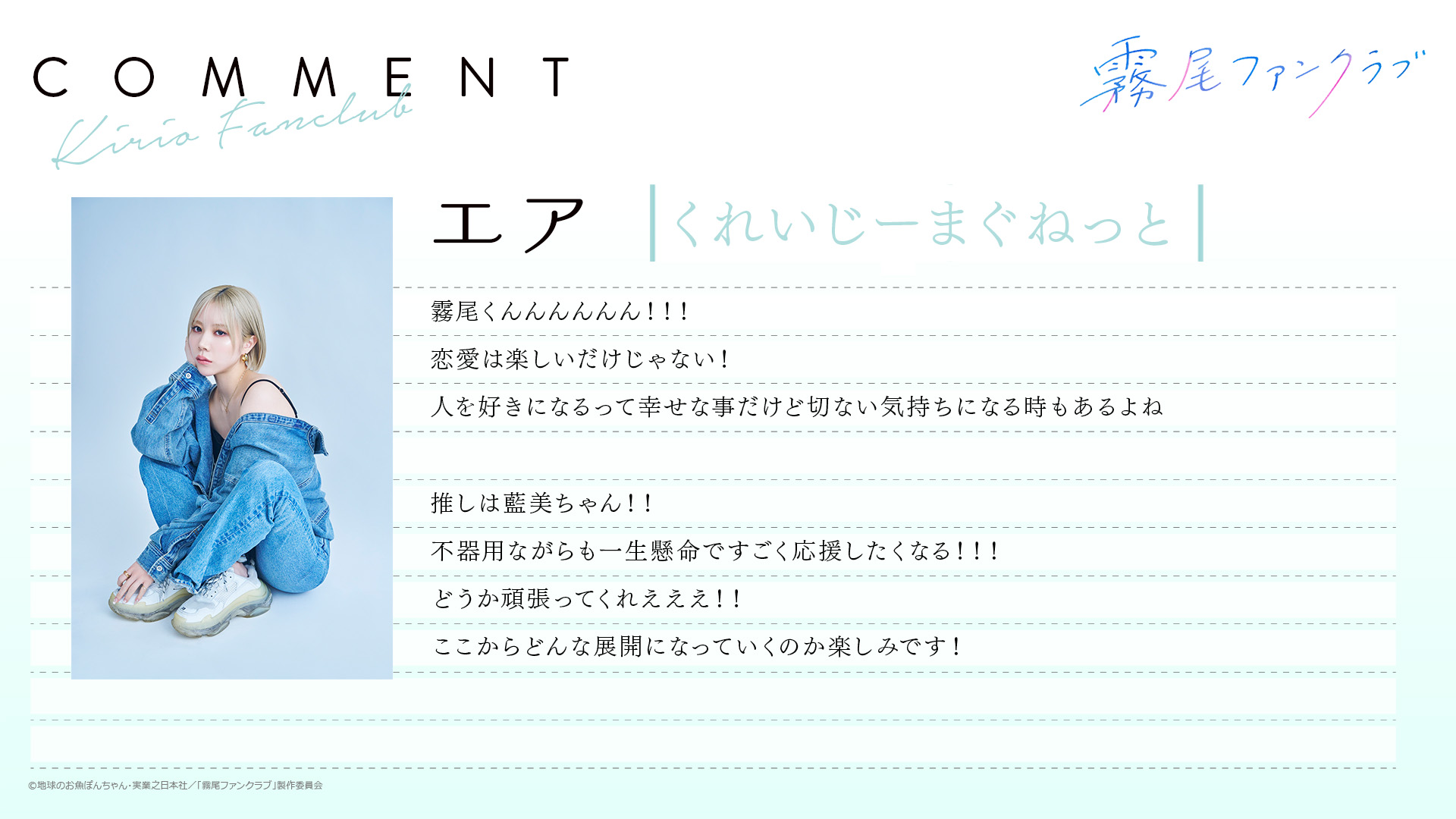 TVアニメ「霧尾ファンクラブ」の魅力が語られたコメントの数々を、どうぞお見逃しなく。