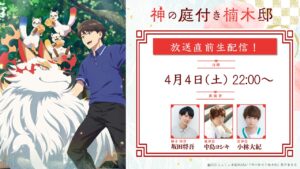 4月4日(土)22時より『神の庭付き楠木邸』公式Xにて、アニメ放送開始記念に公式Xにてスペース生配