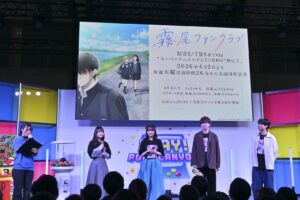 いよいよ放送がスタートするTVアニメ「霧尾ファンクラブ」。映像を観たキャスト陣も、作品の素晴らしさを感じているようで、アニメを観て、それを多くの人に広めてほしいとお願いし、ステージを終えた。