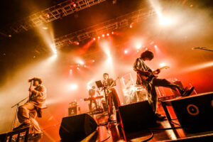 ちなみに「運命の扉」は曲の途中で客席のファンと目を合わせながら歌うのが恒例となっているが、ここで目を合わせたのがこの日初めて花澤のライブに来るという人だったらしく、もしかしたらその人は戸惑ったのかもしれないとは思いつつ、これも対バンライブならではの異文化交流といえよう。「ポルカドットスティングレイの楽曲に合わせて、こちらもアゲアゲのセトリを持ってきました」という花澤はTVアニメ「忍者と殺し屋のふたりぐらし」OPテーマ「やれんの?エンドレス」、TVアニメ「久保さんは僕を許さない」OPテーマ「ドラマチックじゃなくても」を含む全12曲を披露し自らのステージを締めくくる。