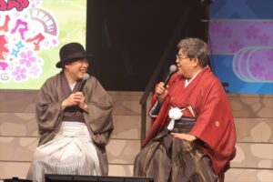 和楽器による生演奏が響く中、特別ゲストとして原作・尼子騒兵衛が登場し、キャスト陣とともに「忍たま乱太郎」のさらなる発展と、作品を愛するすべての方々のご多幸を祈念した鏡開きが披露されました。会場全体が祝福ムードに包まれる中、原作の連載開始から40年という節目を迎えた尼子は「桜も満開のよい季節に、お祝いの日を皆さんと迎えられて本当に嬉しく思います。皆さんの応援が全てですので、これからも乱太郎たちと一緒に前を向いて進んでいけたら」と感謝の言葉を述べ、「この先も連載が続いて50周年になったら、10歳の乱太郎は還暦になっちゃうね」と笑顔でこの先も続く作品の未来に想いを馳せました。