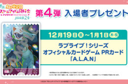 映画『ラブライブ!虹ヶ咲学園スクールアイドル同好会 完結編 第2章』第4弾入場者プレゼントは"ラブライブ!シリーズ オフィシャルカードゲーム PRカード「A.L.A.N」"!7週目週替わり映像は「宮下 愛ver.」!26年1月12日(月・祝) 新春舞台挨拶 実施決定!