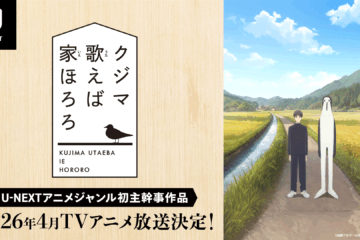 TVアニメ『クジマ歌えば家ほろろ』2026年4月放送決定!ティザー映像 、キャスト、キャラクタービジュアル等が公開!キャスト‧原作者からのコメントも到着! 2025年11月7日 動画配信サービス「U-NEXT」と松竹が共同で製作主幹事を務めるTVアニメ『クジマ歌えば家ほろろ』が2026年4月に放送決定! 本作はU-NEXTのアニメにおいて、初の製作主幹事作品となる。 『クジマ歌えば家ほろろ』は紺野アキラによる漫画で、小学館の月刊漫画雑誌「ゲッサン」で2021年10月号から2024年... 続きはコチラ2026年春アニバースクジマ歌えば家ほろろニュース